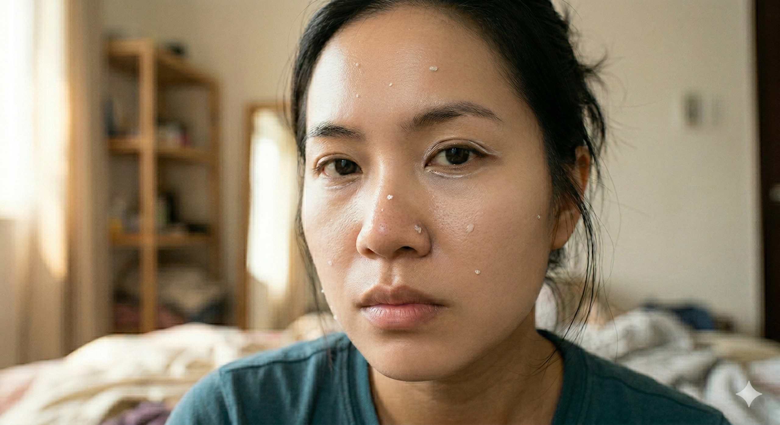 👉 Giải pháp: Đợi lớp dưỡng thấm hoàn toàn trong 2-3 phút. Thay vì miết, hãy dùng thao tác vỗ nhẹ (Tapping) để kem tệp đều vào da.